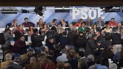 Aunque algunos solo quieren fumar o estirar las piernas, la mayoría se turna la palabra en pequeñas ruedas de prensa en la entrada de la sede del partido en la calle de Ferraz de Madrid. Allí se ha podido escuchar a Tomás Gómez, líder de los socialistas madrileños, sacar pecho de que, esta vez sí, el comité federal mira con buenos ojos su propuesta de que el PSOE elija a su secretario general mediante primarias, en las que participe toda la militancia. Todos esperaban que se decantara por Carme Chacón, pero no lo ha hecho. Ha dicho que prefiere escuchar el debate de ideas.