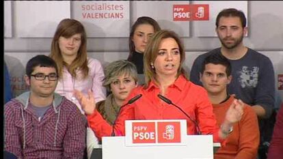 La derecha europea “está estrangulando el crecimiento de España”, dijo anoche Carme Chacón, candidata a liderar el PSOE, en un acto ante más de 300 militantes en Valencia. Chacón, que se había reunido con delegados del PSPV-PSOE al congreso federal, entre quienes cuenta con amplia mayoría, calificó de “obscena” la sonrisa de Mariano Rajoy mientras comentaba el lunes informalmente en Bruselas que la reforma laboral le va a costar una huelga general. “En 15 días, a Rajoy se le ha caído la careta”, dijo.