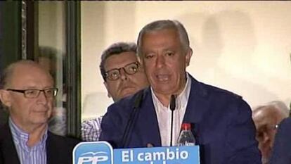Los candidatos populares salen a hacer las primeras valoraciones: "un resultado histórico" recalcan tanto el candidato andaluz, Javier Arenas, como la secretaria general, Dolores de Cospedal sobre los resultados en Andalucía, pese a que su líder no ha logrado la mayoría absoluta.