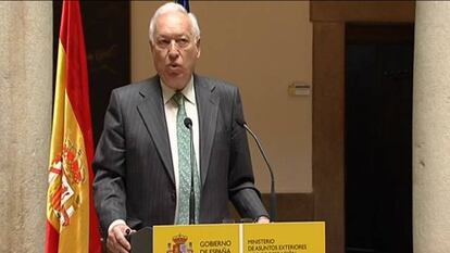 El Gobierno español ha endurecido hoy el lenguaje en su pulso con la presidenta argentina, Cristina Fernández,ante la amenaza de expropiación que pesa sobre las acciones de la petrolera española Repsol en la argentina YPF. Tras recibir durante 45 minutos al embajador argentino en Madrid, Carlo Antonio Bettini, el ministro español de Asuntos Exteriores, José Manuel García-Margallo, ha advertido de que “cualquier agresión contra Repsol, violando los principios de seguridad jurídica, será considerada como una agresión contra el Gobierno español, que tomará las medidas que considere oportunas”, para lo que Madrid ya está recabando “el apoyo de sus socios y aliados”. El ministro no ha querido detallar cuál serían las medidas de respuesta, con el argumento de que aún confía en una solución negociada a partir del “sentido común y el diálogo”, pero ha reconocido que el Gobierno ya las está estudiando. “El peor de los escenarios sería una ruptura, y no solo en términos económicos, de las relaciones fraternales que mantienen desde hace décadas ambos países”, ha advertido. En la misma estrategia, la vicepresidenta, Soraya Sáenz de Santamaría, ha sido contundente cuando se le ha preguntado qué medidas podría adoptar el Ejecutivo: "Las medidas no se anuncian, se adoptan", ha respondido tajante en la rueda de prensa del Consejo de Ministros.