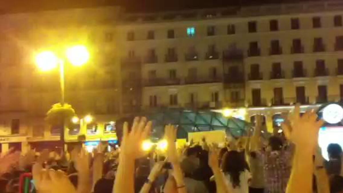 Los indignados celebran a medianoche en la Puerta del Sol el aniversario del 15-M