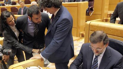 No sabía el presidente del Gobierno, Mariano Rajoy, qué pretendía un joven senador, bien trajeado, que se dirigía hacia él con actitud de gran determinación. Eran las cuatro en punto de la tarde y Mariano Rajoy acababa de llegar a su escaño en el Senado para responder a las preguntas de la oposición. “Presidente, le quiero entregar un regalo de los mineros de León y Asturias encerrados bajo tierra desde hace dos semanas”. A partir de ahí todo fue atropellado y algo abrupto, de manera que el interlocutor no pudo sacar de la bolsa que llevaba el regalo que pretendía hacerle al jefe del Ejecutivo. Se trataba de un casco de minero que el día anterior le habían entregado a este parlamentario los mineros encerrados en la explotación de Santa Cruz del Sil, en el Bierzo (León), para que se lo hiciera llegar al presidente. “No me he atrevido a meter la mano en la bolsa para darle el casco porque temí que los escoltas no reaccionaran bien”, declaró el senador