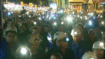 Una marcha nocturna reclama unidad de acción y vitorea a mineros encerrados en la Diputación Nuevos enfrentamientos y cortes en los transportes en Asturias durante la jornada del martes