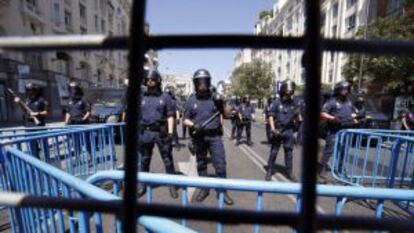 El coordinador de IU, Cayo Lara, ha reprochado al presidente del Gobierno, Mariano Rajoy, las medidas de seguridad que se han desplegado en los aledaños del Congreso de los Diputados después de que el presidente del Gobierno anunciara la última oleada de recortes hace ahora una semana. Las calles que conducen a la Cámara baja se encuentran selladas desde entonces y protegidas por varias decenas de agentes. "El pueblo que decimos representar no es el enemigo", le ha espetado Lara al presidente y ha reclamado la retirada inmediata de las vallas que impiden el paso a la carrera de San Jerónimo de Madrid, la calle donde se encuentra el Congreso. El diputado ha afeado estas fuertes medidas de seguridad, que comparó con el dispositivo que se organiza contra los antisistema y otros manifestantes en las cumbres internacionales: "Ordene quitar las vallas de este Congreso, que parecemos el G-20".