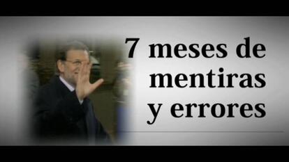 "Yo lo que no llevo en mi programa no lo hago, por tanto no me confunda". El vídeo difundido por el PSOE, cuando se cumplen siete meses del Gobierno de Mariano Rajoy, comienza con esta declaración del líder del PP en el debate que mantuvo con Alfredo Pérez Rubalcaba cuando ambos eran aspirantes a la presidencia del Gobierno.