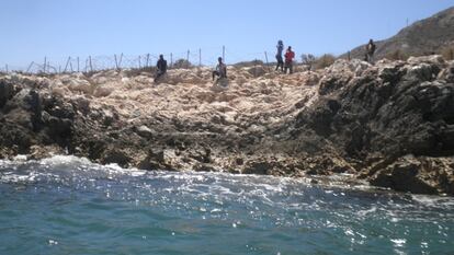 Isla de Tierra es un islote diminuto y deshabitado pegado a la costa marroquí y muy fácilmente accesible a nado. Pero es español. Ayer, por tercer día consecutivo, un grupo de inmigrantes subsaharianos se mantenía en el pedrusco, vallado con alambre de espino y rodeado de turistas en bañador que toman el sol y se bañan tranquilamente en la playa de enfrente, sin que el Gobierno tome ninguna decisión al respecto. Los subsaharianos dicen que están en España, pasean alrededor de la bandera rojigualda que se alza en medio del islote, y piden que los trasladen a Melilla o a la Península. El Ejecutivo, por el momento, se niega a hacerlo. No quiere sentar un precedente. El delegado del Gobierno en Melilla, Abdelmalik El Barkani, llegó a asegurar ayer en un comunicado que ellos no se responsabilizan de lo que pueda pasarles, aunque sí les han prestado alguna ayuda.