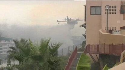Ayer por la mañana, tres de los cuatro frentes iniciales estaban bajo control, y cuando el fuego cercaba la localidad de Ojén, una breve lluvia ofreció una tregua a los especialistas en extinción. Fue un espejismo. Los bomberos trataban de evitar que el fuego saltara la carretera A-355 y se adentrara en el Parque Natural de la Sierra de las Nieves. Pese a los esfuerzos, una lengua de fuego alcanzó la otra orilla de la calzada y en apenas diez minutos, las llamas habían trepado hasta la cumbre de enfrente. Los aviones, con 5.000 litros de agua, y los helicópteros, con 500, iniciaron entonces una peligrosísima coreografía, cargando agua en la costa y soltándola sobre las llamas para evitar su penetración en la sierra.