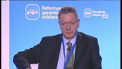 El ministro de Justicia, Alberto Ruiz-Gallardón, ofreció esta tarde la primera respuesta de calado político del Gobierno al discurso que por la mañana había ofrecido en Madrid el presidente de la Generalitat, Artur Mas, quien abogó por un referéndum ante la “fatiga entre Cataluña y España”. "He oído esta mañana a Mas decir que o Cataluña tenía fatiga de España y España de Cataluña", comenzó a decir el ministro en los cursos del verano del PP en Gandia (Valencia): "Eso no es verdad. España no tiene ninguna fatiga de Cataluña. España admira a Cataluña, no se entiende a sí misma sin Cataluña".