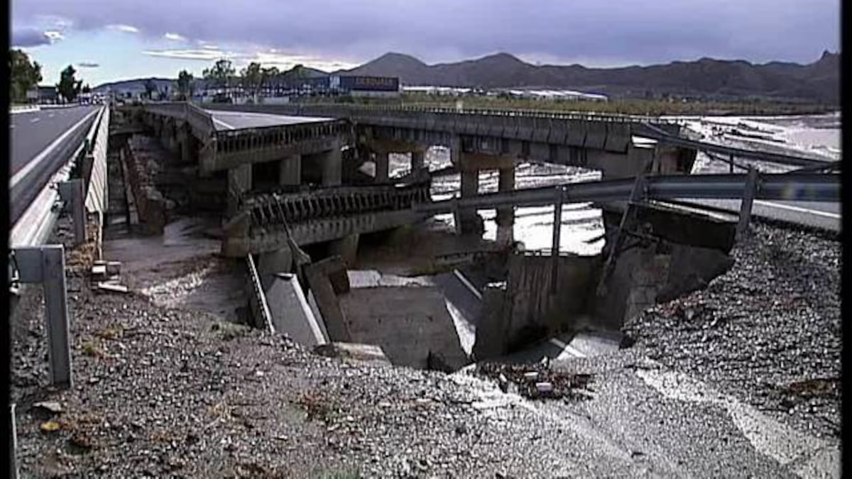 Debido a la crecida de las aguas, un paso elevado de la Autovía A7 en sentido Lorca-Puerto Lumbreras a la altura de la Rambla de Béjar se ha derrumbado cortando la carretera. La autovía está cortada y allí se están produciendo importantes retenciones. "Los pilares del puente, ubicado sobre una rambla, han vencido y han provocado un socavón en la infraestructura, que hace imposible su tránsito", ha explicado la Delegación del Gobierno.