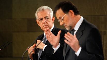 Monti y el presidente español rechazan la creación de un supercomisario de la UE para vigilar los presupuestos de cada país. Ninguno de los dos quiere el rescate