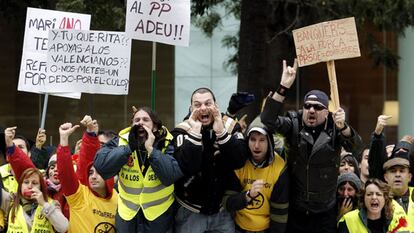 Tanto los directivos como los representantes políticos han recibido abucheos a su llegada al Palacio del Congreso. El presidente y el jefe de la Generalitat valenciana han llegado sobre las 10.40 horas. En la puerta les esperaban la alcaldesa de Valencia, Rita Barberá, y la delegada del Gobierno en la Comunidad Valenciana, Paula Sánchez de León. A la llegada han aumentado los gritos, pitos y abucheos de los manifestantes.