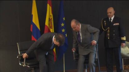 Don Juan Carlos anuncia en Cádiz que volverá a operarse de la cadera la semana que viene. Antes había bromeado sobre su salud con el presidente colombiano: “Aquí me tienes, un poco tullido”