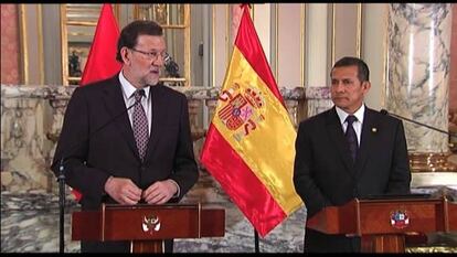 El presidente del Gobierno se encontraba en Lima el día que se ha conocido el dato de paro para el conjunto de 2012. Desde diciembre pasado se han destruido 850.500 puestos de trabajo, la tasa de paro supera el 26% y el 10% de los hogares tienen a todos sus miembros en paro. La sangría del desempleo es especialmente acuciante en el sur de España. Todas las provincias andaluzas y extremeñas, así como Albacete, Ciudad Real y Toledo, las dos de Canarias y Ceuta superan la tasa del 30% de paro. Pese a que en la comparecencia de ambos dirigentes no se han permitido preguntas de los periodistas, Rajoy ha hecho referencia a la realidad más dura de su política económica.