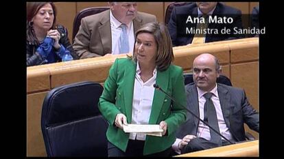La ministra de Sanidad, Ana Mato (PP), tenía un día duro en el Senado. Se enfrentaba a una batería de preguntas de los socialistas sobre los recortes en Sanidad y los pagos de la trama Gürtel a su exmarido, Jesús Sepúlveda, que hoy han vuelto a la palestra con un nuevo auto del juez Ruz. Dos asuntos alejados, pero que acabaron mezclados, lo que la ministra de Sanidad consideró en todo momento "una infamia". Mato dejó claro que no va a dimitir de ninguna de las maneras y, sobre todo, que no cree que tenga ninguna responsabilidad "por lo que haya podido o dejado de hacer otra persona". Aunque sea su exmarido.