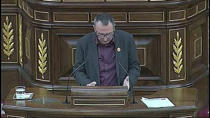 Joan Camprubí, de Compromis- Equo, sube a la tribuna con cuatro sobres, en clara referencia al 'caso Bárcenas'