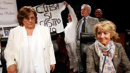 Así se ha pronunciado Aguirre, según han confirmado fuentes del PP de Madrid, durante un acto celebrado en la Casa de América en el que un grupo de castristas ha intentado boicotear la intervención de Berta Soler, líder del Movimiento Damas de Blanco. Antes de que la expresidenta regional empezara a hablar, un grupo de militantes procastristas ha tratado de interrumpir el acto al grito de "¿Pero no vais a admitir preguntas? ¿Defendéis la democracia y la libertad y no admitís preguntas?" ¡No es cierta la versión de Cuba que estáis dando! A lo que otros asistentes, también puestos en pie, han respondido con gritos de "¡Cuba sí, Castro no!".