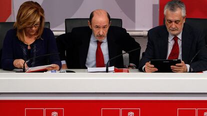 Ha ocurrido más de una, dos y tres veces en el último año: los rumores crecientes de crisis abierta en el PSOE se quedan en nada, o en casi nada, cuando se convocan los órganos de dirección, donde la crítica, si existe, se aplaca mucho. Y volvió a ocurrir ayer: la ejecutiva federal, reunida por primera vez tras el estallido de las tres crisis internas encadenadas que ha sufrido el partido en menos de un mes —la indisciplina del PSC, el desafío por sorpresa de los socialistas gallegos y la moción de censura de Ponferrada—, respaldó la solución ideada por el secretario general, Alfredo Pérez Rubalcaba, para zanjar el debate sobre su liderazgo y autoridad. Esto es, dejar el control diario del partido en manos de su número dos, Elena Valenciano, dedicarse él a la “presencia social” y dar entrada a algunas voces nuevas en los órganos de dirección —la más destacada, la de Ramón Jáuregui en la ejecutiva—. Nadie deja su cargo; se crean puestos nuevos y se “reorganiza” la vida interna del PSOE.