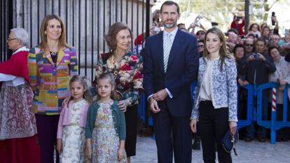 La misa de Pascua en Palma, solo con los Príncipes, Elena y la Reina