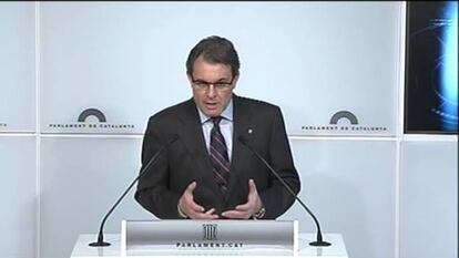 El Gobierno catalán esperaba desde hace días la suspensión cautelar de la declaración de soberanía del Parlamento autonómico y tenía a punto un extenso argumentario para rebatirla. De ahí que Artur Mas no tardara ni una hora en comparecer ante los periodistas y dejar claro que ni piensa desistir en el plan soberanista ni corregir la estrategia. “El camino sigue, pese a los obstáculos”, aseguró el presidente de la Generalitat, al tiempo que argumentaba que la declaración de soberanía fue aprobada por un Parlamento “elegido democráticamente” y con un mandato claro de los electores. A partir de ahora es el Parlamento catalán el que debe mover ficha. Hoy mismo se reunirá la Junta de Portavoces para trazar la estrategia. Antes de 20 días la cámara catalana tiene que enviar las alegaciones para evitar la suspensión definitiva del acuerdo. Mas no respondió este miércoles a la pregunta de si estaría dispuesto a volver a votar la declaración como medida de protesta.