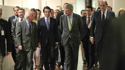 El expresidente ha dado muestras de ser absolutamente consciente de que su entrevista la semana pasada en Antena 3 fue muy mal acogida por el Gobierno de Mariano Rajoy y la mayoría de la dirección del PP. “Yo no estoy contra nadie, estoy con los españoles; no más que nadie, pero no menos que nadie”. Esta precisión la introdujo después de una breve alocución en la que defendió los logros de la Transición y los peligros de que se pierdan. De manera implícita ha pedido a Mariano Rajoy que utilice la mayoría absoluta que tiene en el Parlamento para llevar adelante las reformas que España necesita. Ningún ministro acudió a oír al expresidente.