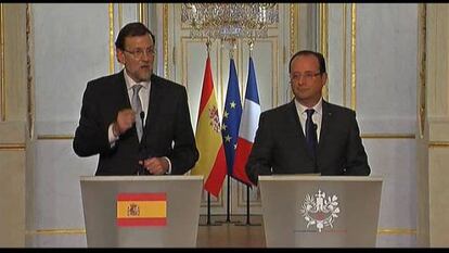 Rajoy pronunció en París uno de los discursos más trabajados y más claramente europeístas de los últimos meses y que sirvió para tratar de calentar el ambiente para la cumbre de junio. España ha tomado medidas dolorosas, recordó, y está dispuesta a seguir recortando el déficit, pero necesita contrapartidas. “Los ciudadanos necesitan percibir que los sacrificios tienen contrapartidas palpables. La lógica nos impone la moderación del ritmo de consolidación fiscal para adaptarlo a la realidad. Lo principal es el compromiso, los plazos deben adaptarse a las circunstancias”. Pero sobre todo Rajoy llamó a tomar decisiones, también del Banco Central Europeo, para girar la deriva de Europa hacia la depresión: “Europa es la única región del mundo que no crece, seis trimestres en recesión, es normal que la gente se pregunte qué estamos haciendo mal. Europa debe hacer más”, remató.