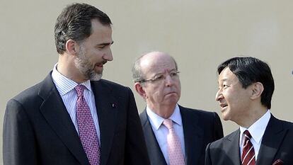 El Príncipe Felipe ha recibido este lunes al príncipe Naruhito de Japón con honores militares en el Palacio de El Pardo, donde el heredero del trono japonés se hospedará durante su visita de seis días a España, que ha comenzado este lunes y en la que visitará Madrid, Salamanca, Santiago de Compostela, Sevilla y Coria del Río.