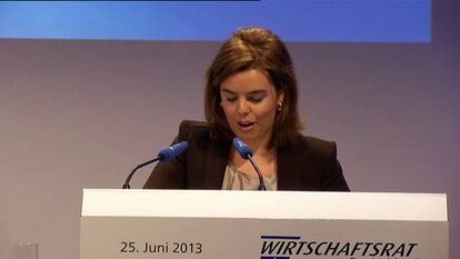 La vicepresidenta apuesta, en alemán, por "una España fuerte dentro de una Europa fuerte" Afirma que el objetivo es que los jóvenes "decidan libremente si quieren a migrar"