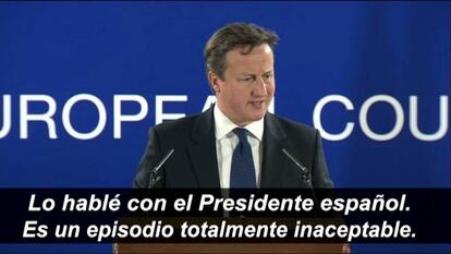 El primer ministro del Reino Unido, David Cameron, considera "inaceptable" los disparos que supuestamente realizó la Guardia Civil española en aguas de Gibraltar el pasado 24 de junio. Por eso, el mandatario británico ha reclamado este viernes en Bruselas al presidente del Gobierno, Mariano Rajoy, que se respete la soberanía del peñón. "Es muy importante que se respeten las normas internacionales, y eso incluye a Gibraltar también", ha señalado Cameron en la rueda de prensa posterior a la cumbre europea.