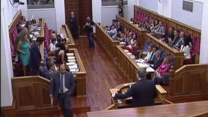 "Váyase, señora Cospedal, porque no la quiere nadie en Castilla-La Mancha. Váyase y convoque elecciones anticipadas". El portavoz del Grupo Parlamentario Socialista en las Cortes de Castilla-La Mancha, José Luis Martínez Guijarro, ha pedido este martes en sede parlamentaria la dimisión de la presidenta autonómica, María Dolores de Cospedal, y la convocatoria anticipada de elecciones por las supuestas donaciones irregulares aceptadas a cambio de adjudicaciones a dedo reveladas por el extesorero del PP, Luis Bárcenas. A continuación, la bancada socialista —el único partido de la oposición— ha abandonado el pleno dejando en el turno de palabra al portavoz del PP, Francisco Cañizares.