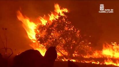 Miles de hojas de encina en llamas trajeron el fuego del otro lado de la frontera. Fue por el fuerte viento que soplaba del oeste, pero Serafín Sebastián, de 69 años, no recuerda que un incendio cruzara el río Duero, separación natural entre España y Portugal, desde los años sesenta. Y mucho menos que llegara al pueblo, Villardiegua de Ribera (Zamora, 147 habitantes), del que tuvieron que ser desalojadas 80 personas, sobre todo ancianos y niños, porque el resto se quedó plantando cara a las llamas, mientras sus alrededores ardían. El incendio devoró 1.000 hectáreas antes de quedar estabilizado.