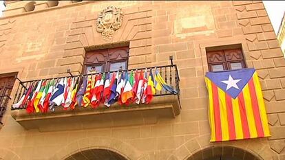 El balcón del Ayuntamiento de Agramunt (Lleida) parece una emulación, pero con tintes soberanistas, del conocido juego ¿dónde está Wally? En este caso la pregunta sería, ¿dónde está la bandera española? Un juez acaba de obligar al alcalde a poner la enseña española en un lugar visible. El regidor ha asegurado que acatará la sentencia y dejará únicamente la española, la catalana y la europea. Pero de momento, la fachada de la casa consistorial sigue como se ve, entre un bosque de banderas nacionales, europeas y autonómicas. Y junto a una gran bandera independentista catalana.