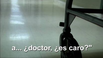 La imagen del vídeo es la rueda de una camilla de hospital pasando por los pasillos y relata que con "el palo de Rajoy" habrá "muchos" españoles que dejarán de preguntar "doctor, ¿es grave?" para decir "doctor, ¿es caro?". El vídeo concluye con el lema "Pagar para vivir. Crueldad crónica".