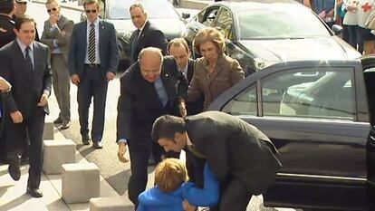La vicepresidenta de la Cámara ha dado un traspiés con los bolardos que protegen el recinto en una visita de la Reina.