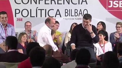 En los últimos días ha vuelto a ocurrir: el pasado domingo, Rubalcaba y el vasco Patxi López —uno de los que suena como posible aspirante en unas primarias— participaban en Bilbao en la clausura de la conferencia política de Juventudes Socialistas cuando Lara, una de las asistentes, tomó el micrófono para reclamar “primarias ya” y fue aplaudida por muchos de sus compañeros. Ayer, antes de que la ejecutiva federal del PSOE se reuniese excepcionalmente en Toledo para escenificar su apoyo a Page en la batalla que libra con el PP regional, precisamente el líder de los socialistas castellano-manchegos reiteró su opinión en una entrevista en la cadena SER: las primarias, dijo, deben ser antes de las elecciones europeas de mayo o, “en todo caso, con bastante anterioridad a las municipales y autonómicas” de mayo de 2015. “La gente lo está reclamando. No vaya a ser que se nos pase la vez”, afirmó.