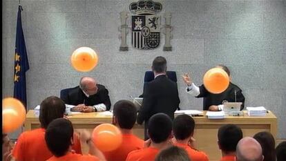 La Audiencia Nacional juzga a partir de este lunes a 40 supuestos miembros de Segi, la ilegalizada rama juvenil de Batasuna, para los que la Fiscalía pide penas de prisión de entre 7 y 9 años por integración en organización terrorista. El juicio ha comenzado con una protesta simbólica: los acusados, vestidos todos con camisetas naranjas en las que se leía "Free, Askatu, Libre", se han puesto en pie y han comenzado a lanzar al aire globos del mismo color.