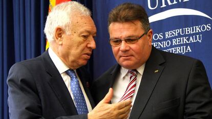 El ministro de Asuntos Exteriores y Cooperación, José Manuel García-Margallo, no ceja en su empeño de segar la hierba bajo los pies a cualquier apoyo internacional al proyecto soberanista catalán. Esta mañana ha aleccionado a su homólogo lituano, Linas Linkevicius, sobre las diferencias entre el proceso catalán y el que llevó a la independencia de las repúblicas bálticas, a principios de los noventa. El paralelismo lo buscaron los independentistas catalanes al haberse inspirado en la llamada Vía Báltica –una cadena humana de 600 kilómetros que reclamó en agosto de 1989 la independencia de Estonia, Letonia y Lituania de la URSS—para organizar la Vía Catalana del pasado 11 de septiembre.