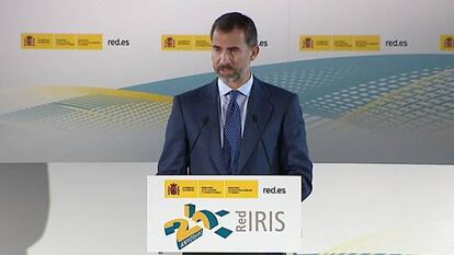 Don Felipe ha querido iniciar así su discurso en el acto por el 25 aniversario de la Red Iris, la red académica y de investigación, financiada por el Ministerio de Economía, que proporciona servicios de comunicaciones a la comunidad científica y universitaria española y que el Príncipe ha resumido como "una historia de éxito que demuestra lo que se puede hacer o conseguir cuando se llega a tiempo, cuando intentamos estar en las brecha de los avances y la innovación".