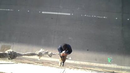 Grupos de adolescentes y niños viven en las escolleras del puerto melillense Un vídeo de una ONG muestra cómo se cuelan en el puerto descolgándose con una cuerda