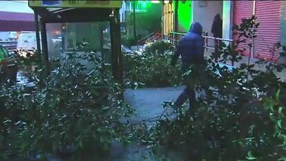 El fuerte y rápido temporal de lluvia y viento ha dejado numerosos destrozos en el mobiliario callejero y ha tirado árboles en la ciudad