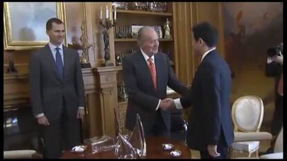 No estaba previsto, pero el Príncipe se ha sumado al encuentro entre el Rey y el ministro japonés, que ha formalizado la invitación para que don Felipe y doña Letizia viajen este año a su país. También han estado presentes en la entrevista el ministro de Asuntos Exteriores, José Manuel García Margallo, el secretario de Estado Gonzalo de Benito Secades; el embajador de España en Japón, Miguel Ángel Navarro Portera, y el embajador de Japón en España, satoru satoh.