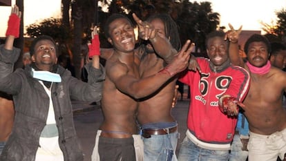 El trasiego de subsaharianos es constante en los alrededores del CETI. A las 19.30 una docena se agolpaban en la ventanilla del control y mostraban su documentación a los guardias. “Mucha, mucha, mucha gente dentro”, explica Assan Alí, de 22 años. Enfundado en una sudadera con capucha, cuenta que lleva en las instalaciones dos semanas, desde que saltara también la valla. Viene de Camerún, pasó un año y medio en Marruecos y ahora quiere alcanzar Madrid. “Allí tengo un hermano”, asegura.