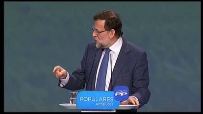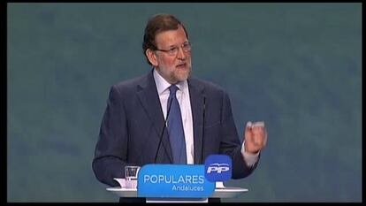 El mensaje de la recuperación en términos macroeconómicos ya no es suficiente y el presidente del Gobierno, Mariano Rajoy, ha mostrado este domingo cuál va a ser el objetivo con vistas a la campaña de las elecciones europeas del 25 de mayo. Días después de celebrar el debate sobre el estado de la nación y exponer con triunfalismo su hoja de ruta para los próximos meses, el presidente del Gobierno ha insistido este domingo en la idea de que los indicadores del crecimiento no son un concepto abstracto y que llegarán a los bolsillos de los ciudadanos. Lo ha hecho en un acto de partido, la clausura del congreso del PP andaluz, que ha proclamado a Juan Manuel Moreno nuevo presidente del partido en esta comunidad. “De la prima de riesgo no se come, dicen, pues sí se come”, ha enfatizado el jefe del Ejecutivo.