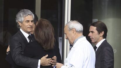 Por el velatorio que la familia ha organizado en la clínica donde ha muerto el expresidente del Gobierno han desfilado ya exministros y personas próximas al que fue primer presidente de la democracia. La alcaldesa de Madrid, Ana Botella, y José María Aznar, que arropó la breve carrera política del hijo de Suárez, han estado allí.