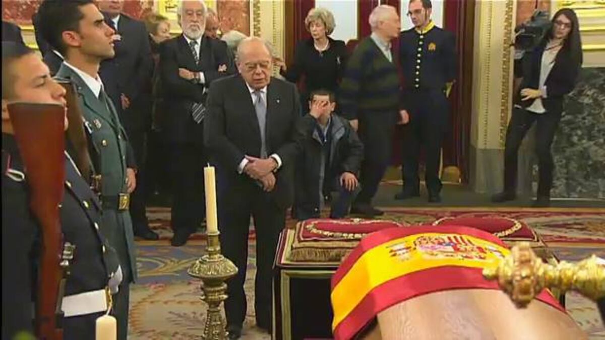 El expresidente de la Generalitat, Jordi Pujol, con la mirada baja, ha rendido homenaje a Adolfo Suárez con quien pasó muchas horas de diálogo. Algunos retazos de experiencias vividas narró a sus dos hijos, Adolfo y Javier, a quienes sostenía por las manos. “Les he dicho que aunque parezca un contrasentido hoy es un día de honda alegría, profunda, por este reconocimiento sincero de tanta gente”. Jordi Pujol ha reconocido que “el afecto” por Suárez fue constante “incluso en el desacuerdo”. “No siempre coincidíamos pero siempre valoré su valentía y su buena fe”, informa Anabel Díez.