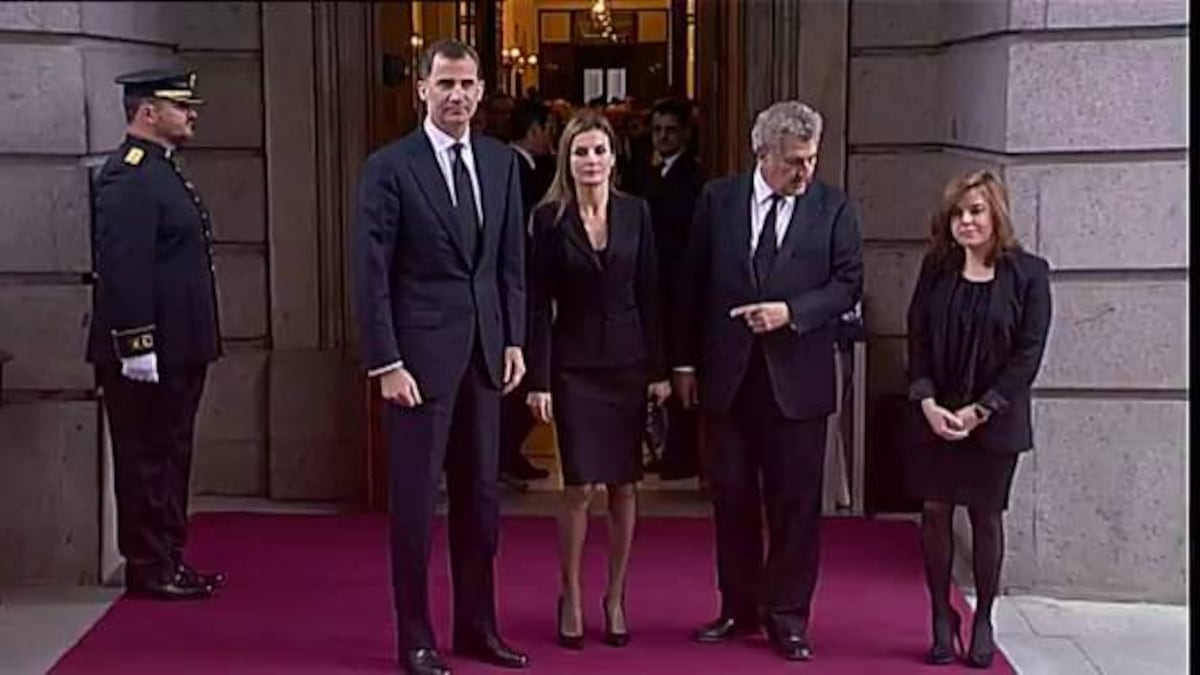 Los Príncipes, en el Congreso. “Es una gran pérdida para España. Hay que agradecerle todo”, declara don Felipe sobre Adolfo Suárez.