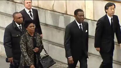 La solemne ceremonia ha provocado por segunda vez en una semana una estampa de unidad insólita y probablemente efímera al reunir a los tres expresidentes (González, Aznar y Zapatero) y una coincidencia incómoda, ya que el único jefe de Estado extranjero que ha asistido al funeral por el presidente bajo cuyo mandato se reinstauró la democracia tras la dictadura franquista ha sido un dictador, el presidente de Guinea ecuatorial, Teodoro Obiang.