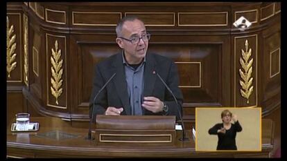 Como CiU, doble presencia de ICV en la tribuna con la intervención de Joan Coscubiela, quien ha defendido el texto que ha llegado del Parlamento de Cataluña como una propuesta de diálogo para superar un conflicto de legitimidades.