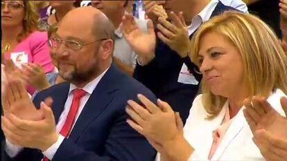 Valenciano se colocó en la estela que le ha dejado el error del PP y lanzó un llamamiento al voto femenino, una de las claves de la campaña. “Pido a las mujeres españolas que el domingo voten, y que voten a quien quieran, pero no a quienes las desprecian”. Y apeló a Martin Schulz, que viene por segunda vez a España en la campaña. El alemán necesita un buen resultado del socialismo en España y en otros países clave para darle él también la vuelta a las encuestas que sitúan al PPE por delante y por tanto al democristiano Jean Claude Juncker en la presidencia de la Comisión Europea. “Con tu presidencia lograremos que todas las mujeres de Europa seamos libres para decidir sobre nuestra maternidad”, le dijo a Schulz de nuevo para explotar el flanco débil del PP con la ley del aborto.