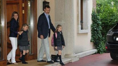 Los príncipes de Asturias celebran hoy su décimo aniversario de boda y en la recién estrenada cuenta de Twitter de la institución (@casareal) han colgado dos fotografías tomadas a las 8.25 y alas 8.30 de la mañana: una saliendo de casa para llevar a sus dos hijas, las infantas Leonor y Sofía al colegio – el mismo al que fue don Felipe- y un posado de los cuatro. Es algo inusual y obedece a la efeméride, ya que los Príncipes, y especialmente la Princesa, son muy celosos de su vida privada, como quiso dejar claro don Felipe al presentar oficialmente a su futura esposa: “Aspiramos a fundar una familia. Y queremos alcanzar el necesario equilibrio entre lo público y lo privado, entre las obligaciones —que lo son de por vida— y la legítima y necesaria vida familiar; sabiendo que nuestro trabajo requiere una serenidad, una dedicación, una constancia y una mesura tales que permitan hilar el tiempo político con el tiempo humano”.