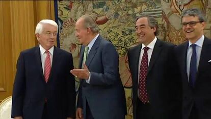 Don Juan Carlos ha tenido esta tarde una breve conversación con los periodistas durante una audiencia en La Zarzuela al presidente de la Cámara de Comercio de Estados Unidos. "Nunca os habéis interesado tanto por mí como hoy". Los periodistas le han preguntado si estaba triste. "¿Vosotros cómo me veis? Hay que contestar a la gallega", ha replicado.